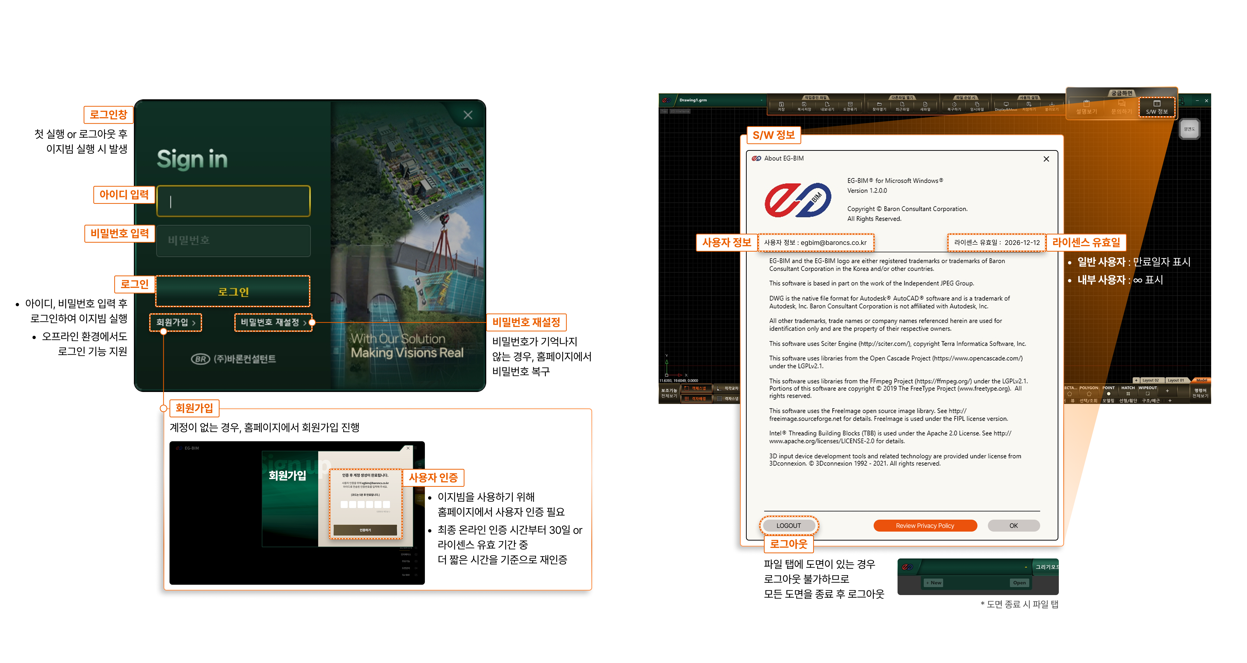 이지빔 소프트웨어 로그인 및 로그아웃