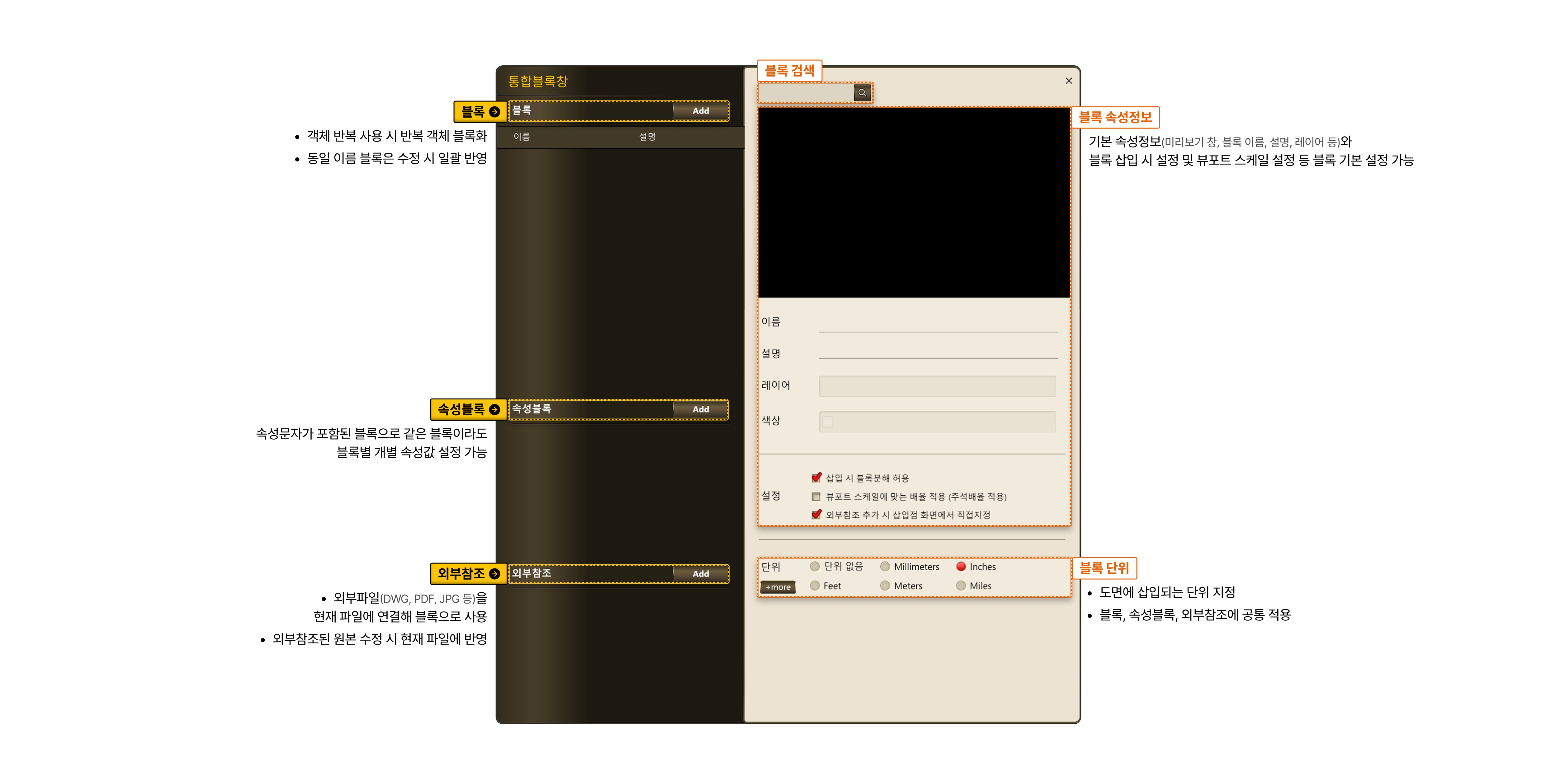 블록 만들기 > 블록 통합 관리창
