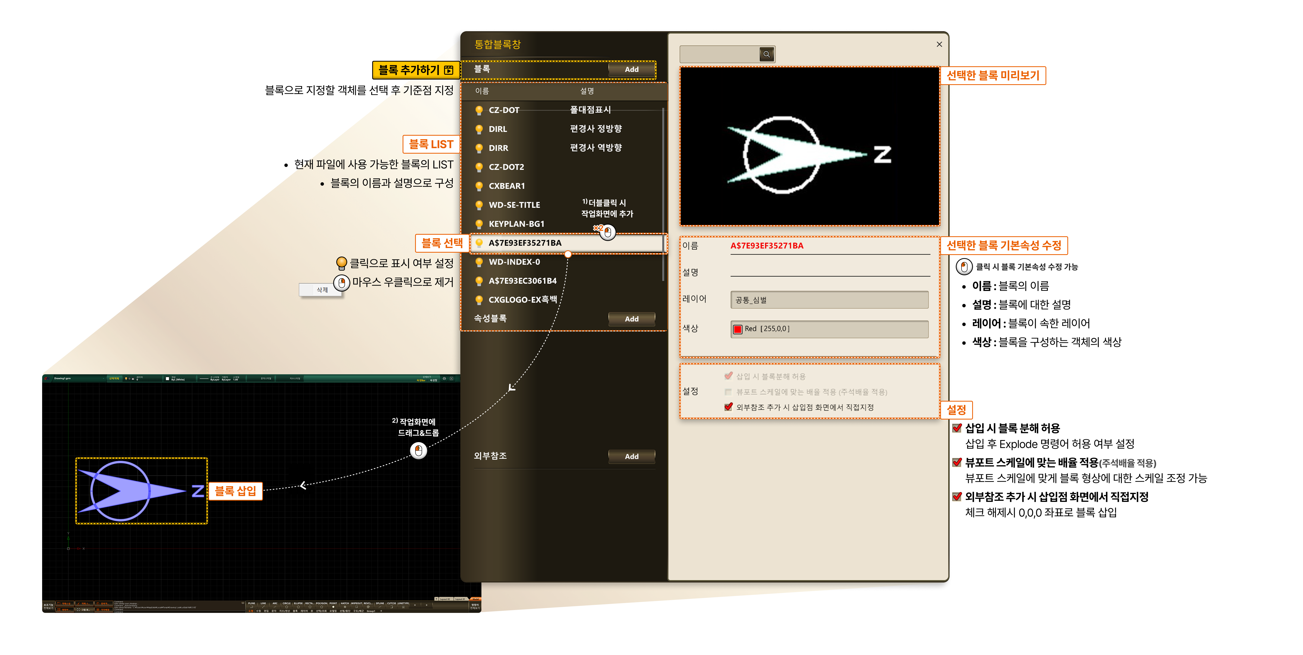 블록 만들기 > 블록 통합 관리창
