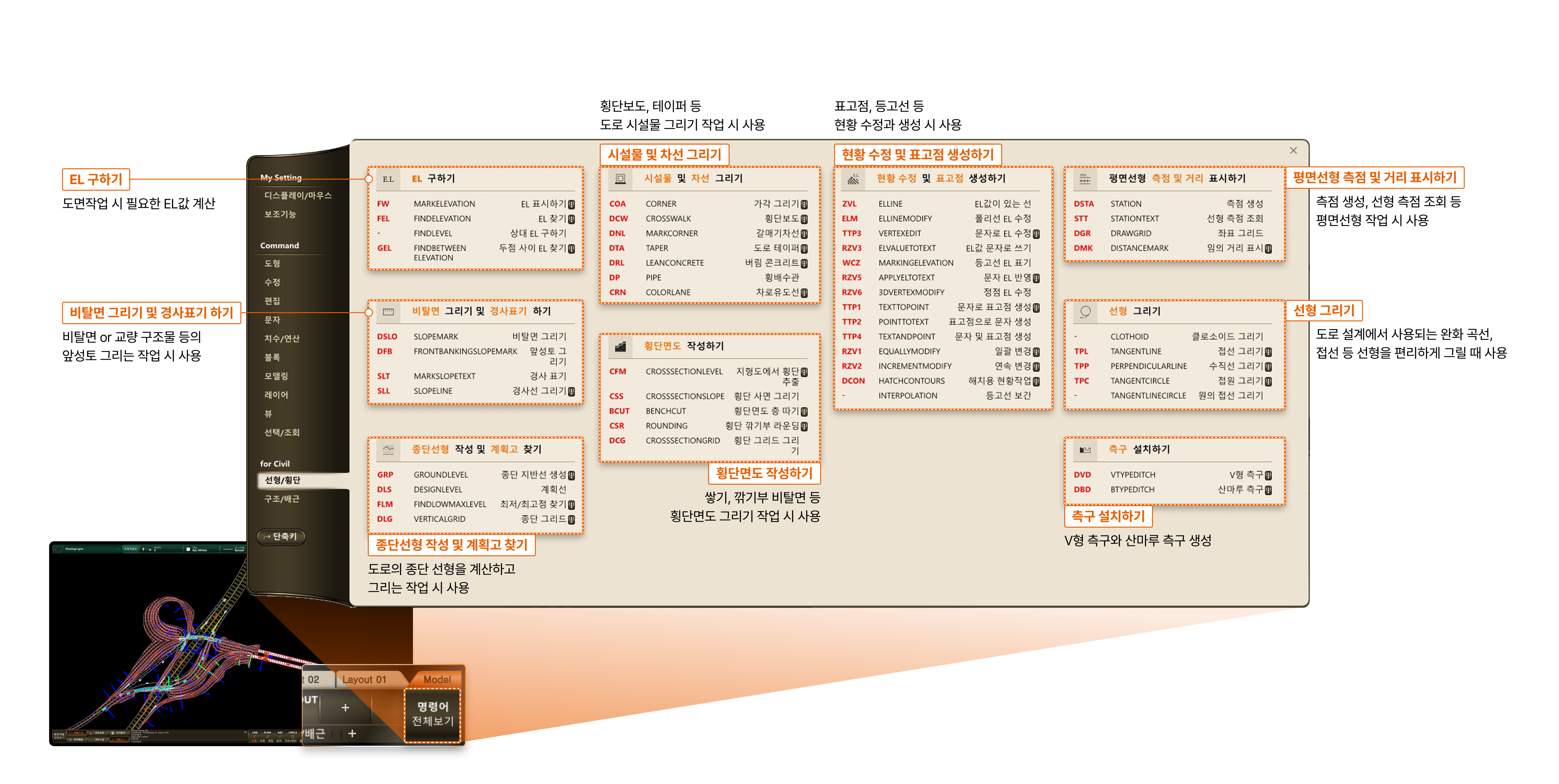 토목/도로분야의 도면 작업시 자주 사용되는 특화 명령어