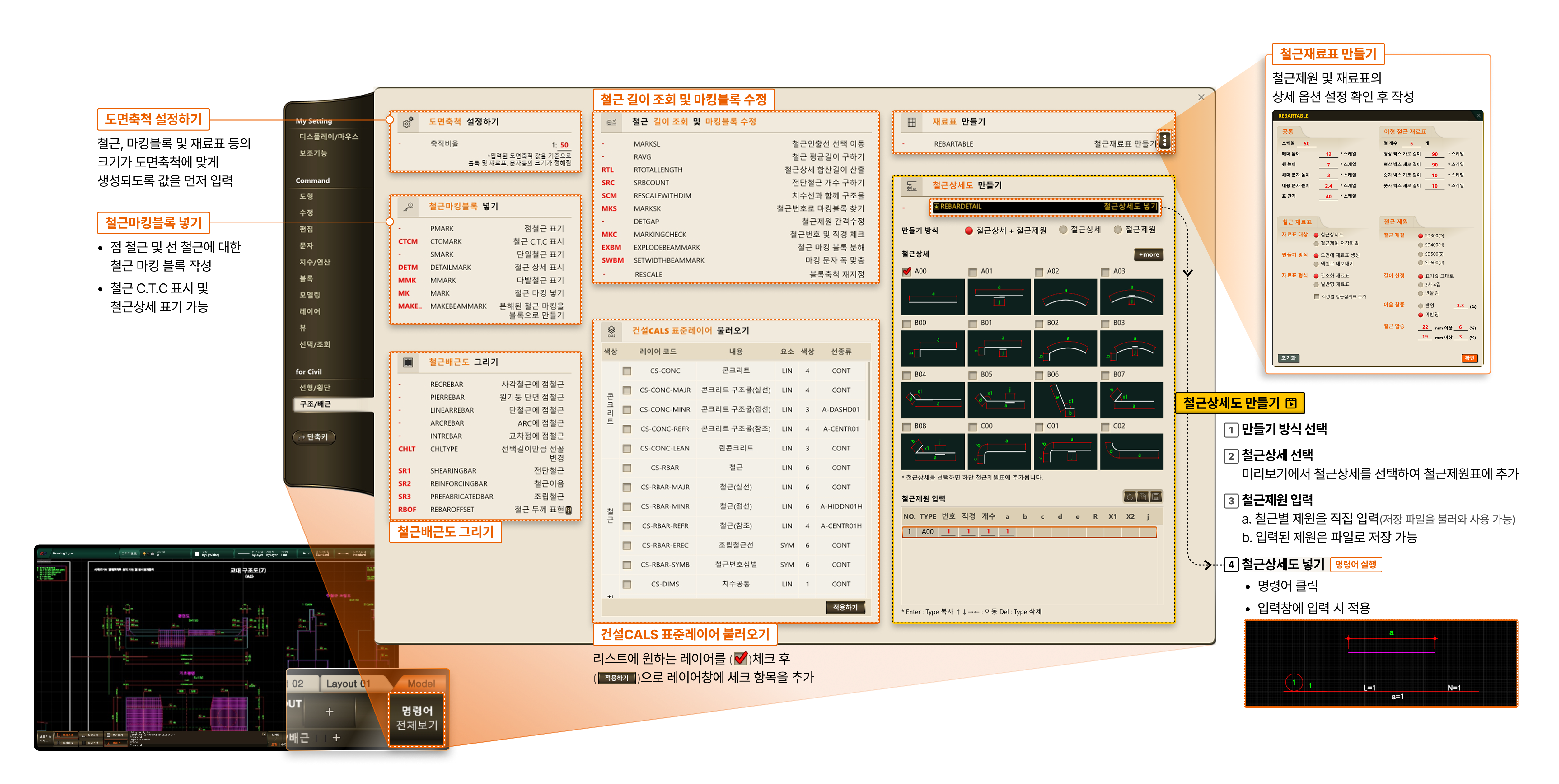 작업량이 많고 작업 시간이 긴 구조/배근도, 특화명령어로 초보자도 쉽게