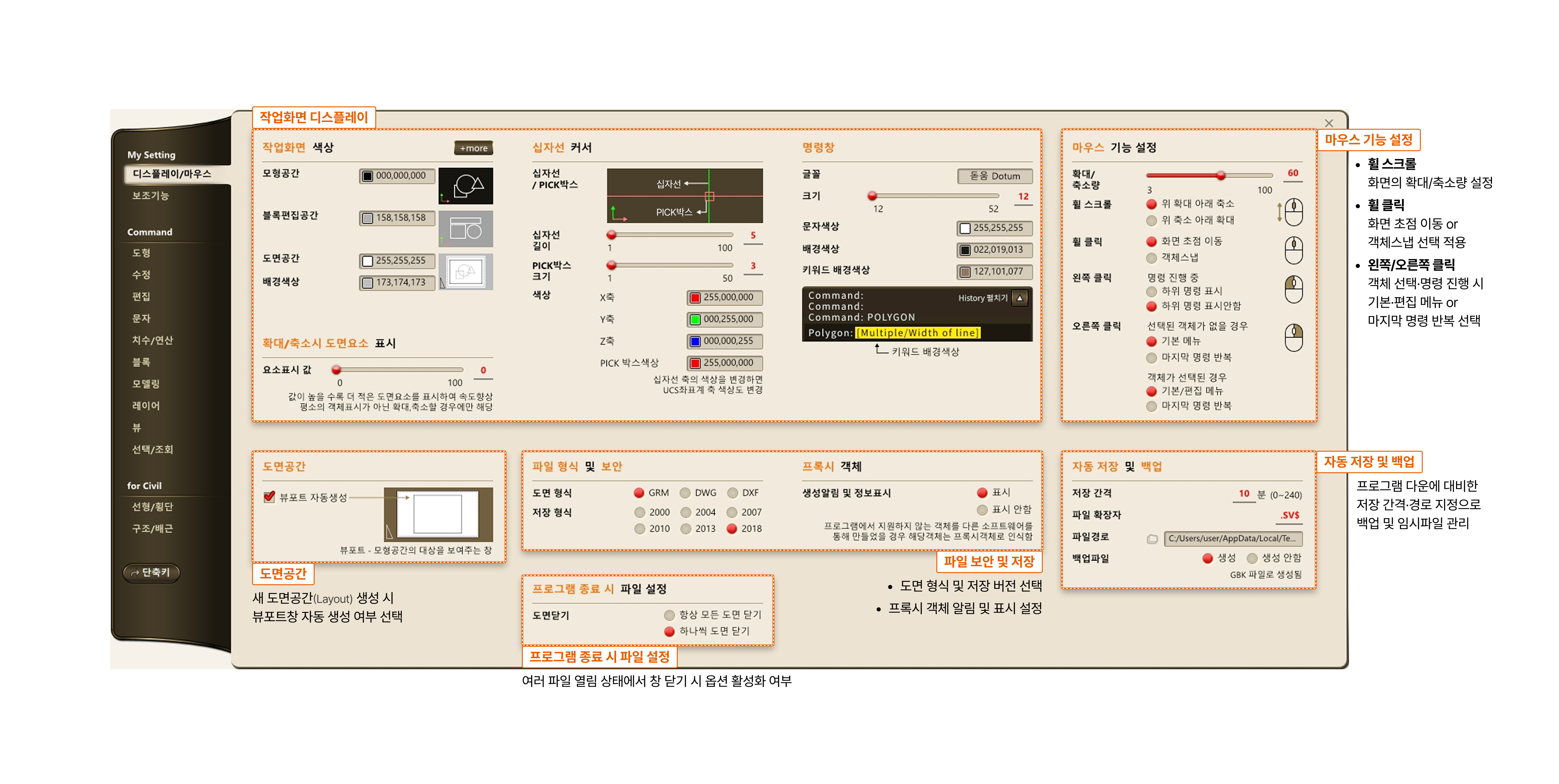 - 명령어 입력창 > Command : OPTIONS