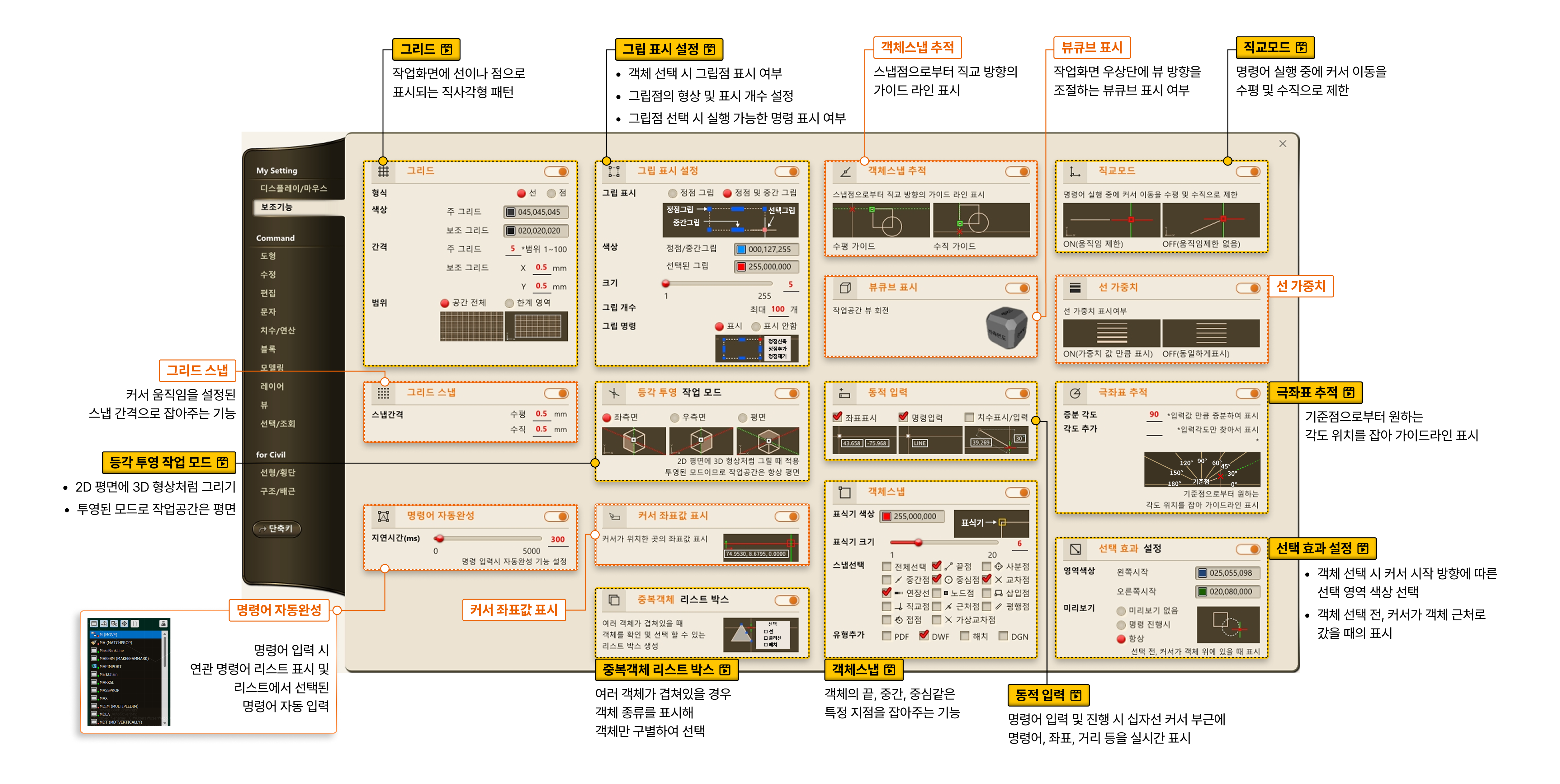 - 명령어 아이콘바 > 명령어 전체보기 > 보조기능