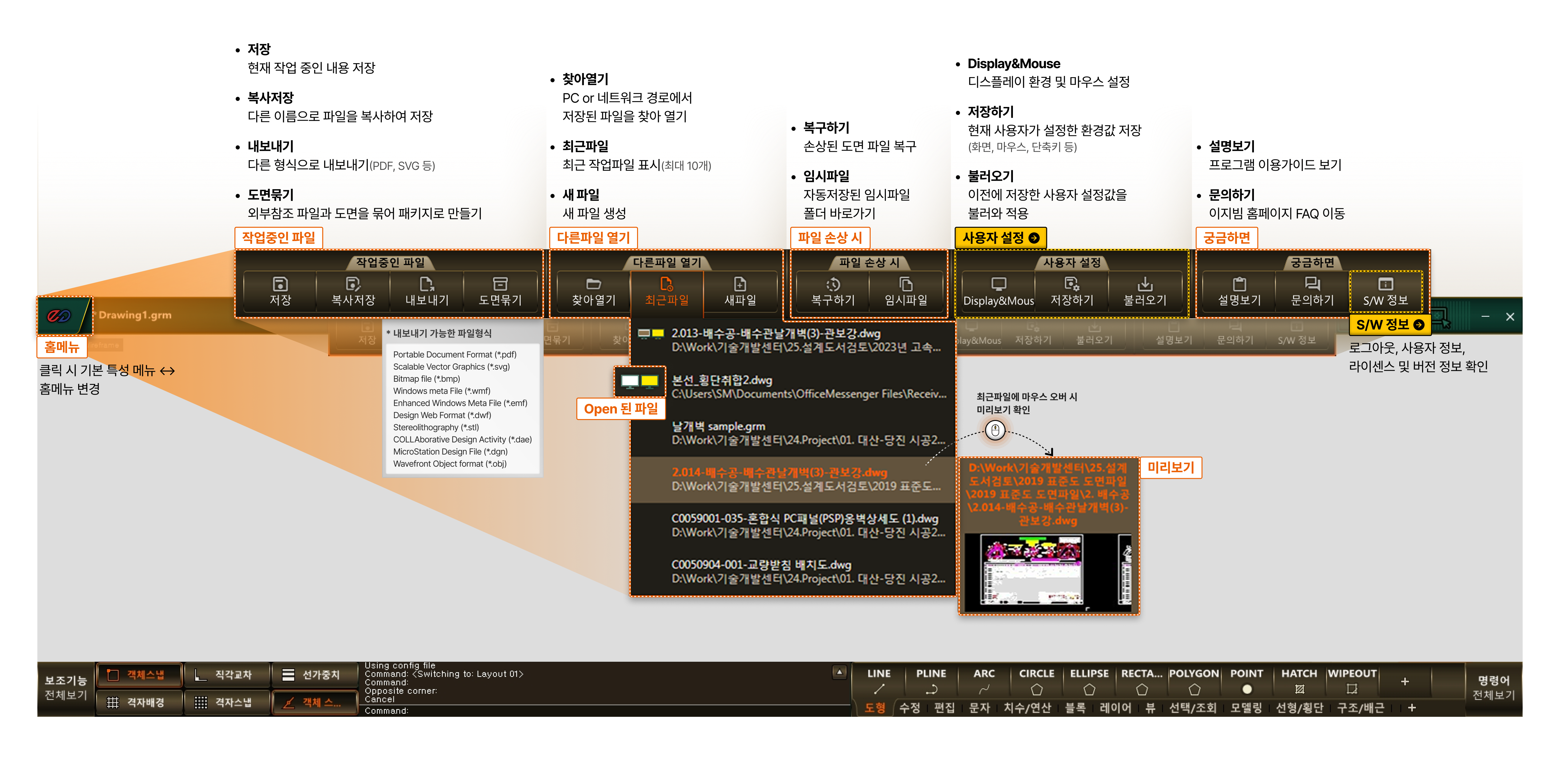 - 최근파일 : 최근 작업파일 표시(최대 10개)