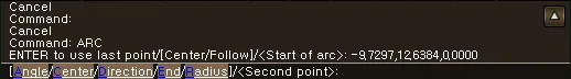 Center중심점을 지정한 후, 시작점과 끝점을 마우스로 클릭하여 ARC를 생성합니다.
