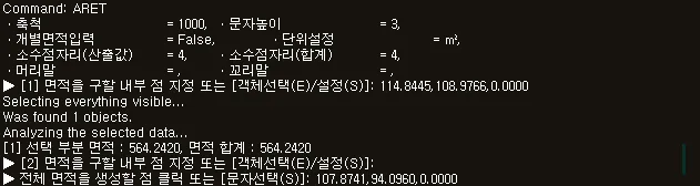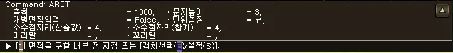 섹션 제목: “1. 면적 표시하기 시연 영상”1) 명령창에 “ARET” 입력합니다.
