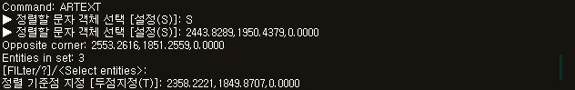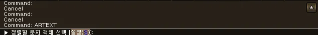 섹션 제목: “1. 텍스트 정렬하기 시연 영상”1) “ARTEXT” 명령어를 실행합니다.