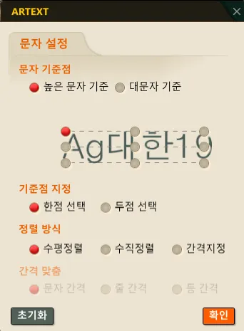 2) “S” 를 입력하고 ARTEXT 대화상자에서 원하는 옵션을 설정합니다.