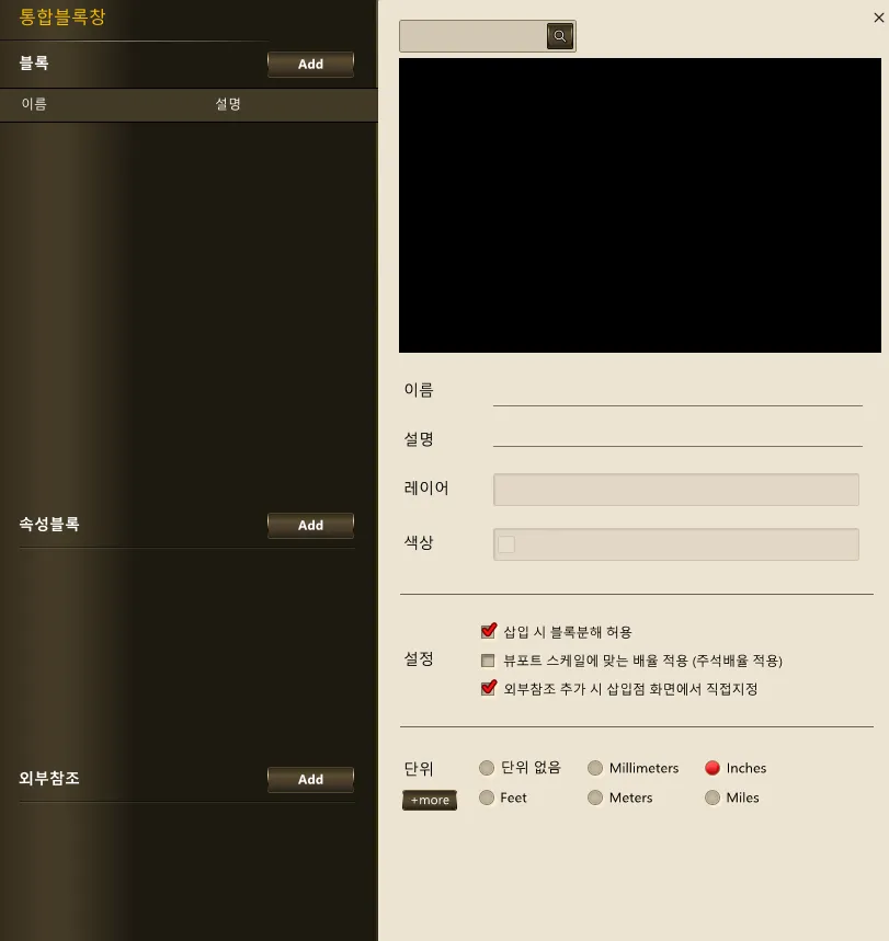 - 도면에 그려진 여러 객체를 하나의 블록으로 정의하여, 이후 재사용할 수 있게 만드는 기능입니다.