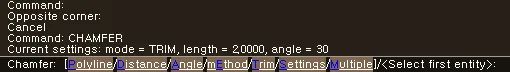 • Multiple: ESC로 종료하기 전까지 모따기를 연속적으로 실행합니다.