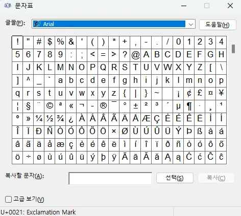 2) 문자표 대화상자가 나타납니다.