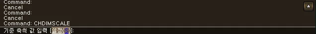 섹션 제목: “1. 치수 비율 조정하기 시연 영상”1) 명령창에 “CHDIMSCALE” 을 입력합니다.