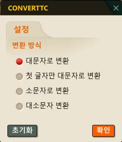 섹션 제목: “1. 대소문자 변경하기 시연 영상”1) “CONVERTTC” 명령어를 실행합니다.