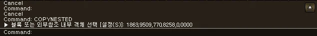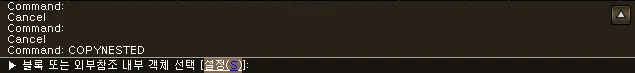섹션 제목: “1. 블록 객체를 일반 객체로 복사하기 시연 영상”1) 명령창에 “COPYNESTED” 명령어를 실행합니다.