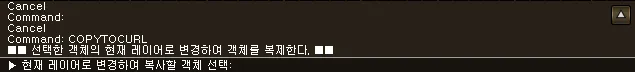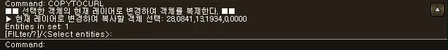 섹션 제목: “1. 현재 레이어로 복사하기 시연 영상”1) 명령창에 “COPYTOCURL” 명령어를 입력합니다.