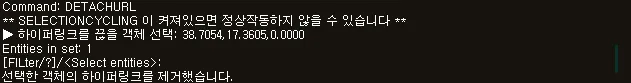 섹션 제목: “1. 객체 하이퍼링크 제거 시연 영상”1) “DETACHURL” 명령어를 실행합니다.