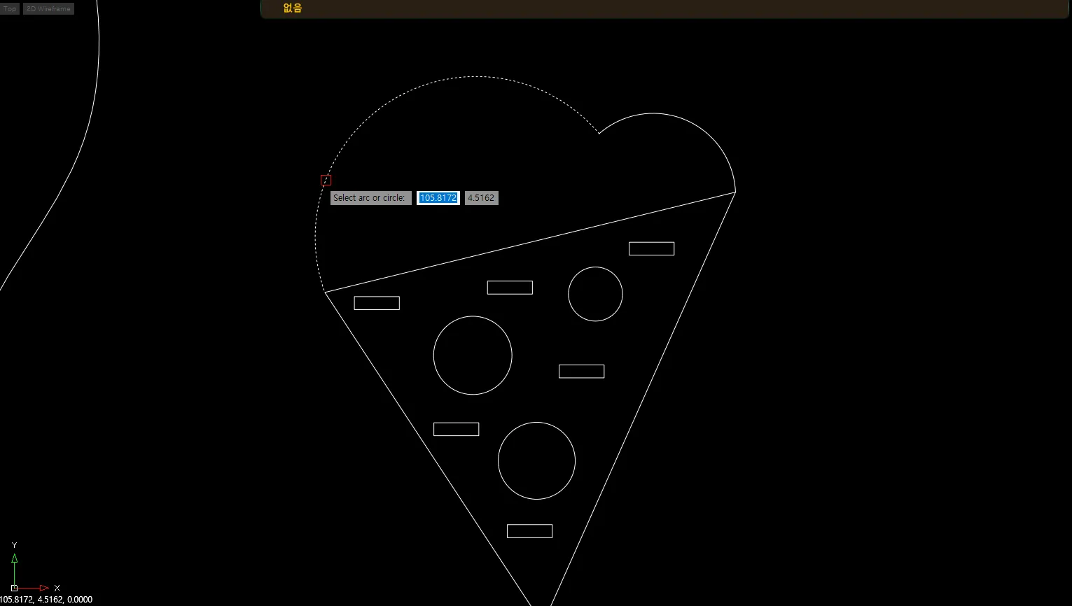 2) 중심점에 표식을 작성할 원 또는 호를 선택합니다.