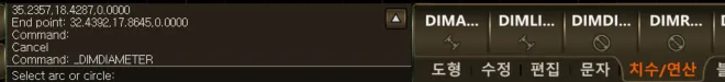 섹션 제목: “1. 지름 치수 입력 방법 시연 영상”1) DIMDIAMETER 명령을 실행합니다.