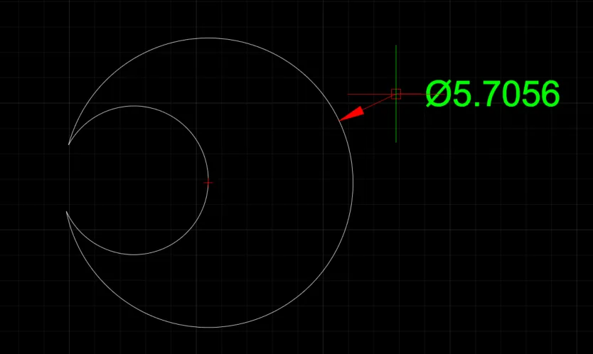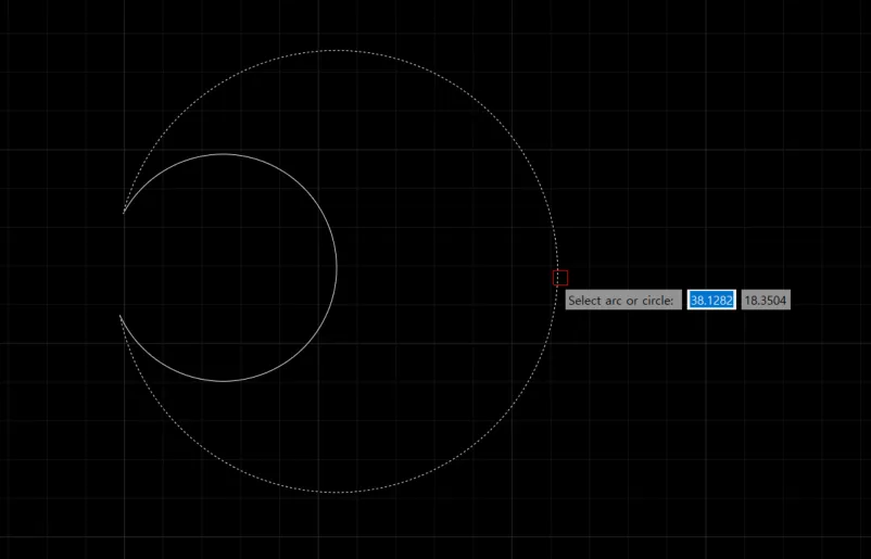 2) 도면에 지름을 측정할 원 또는 호를 선택합니다.