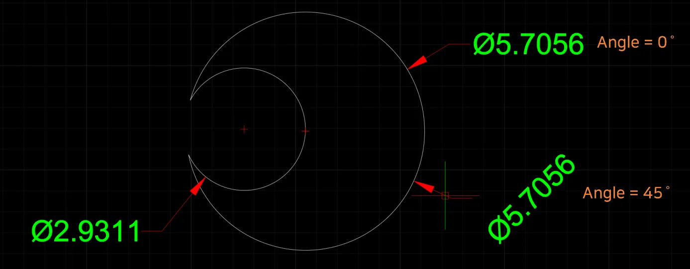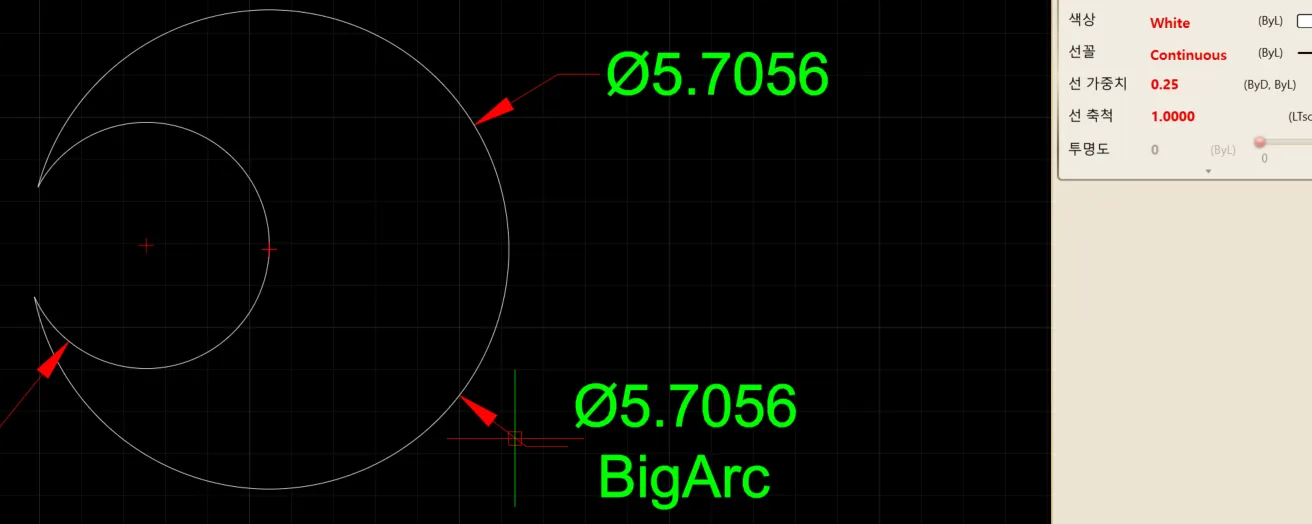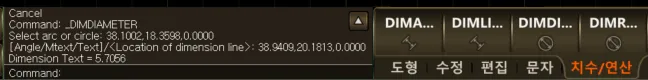 - 선택한 원 또는 호의 지름을 측정하여 치수 문자로 표시합니다.