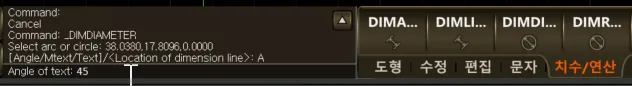 2. 지름 치수 문자의 각도 변경 시연 영상