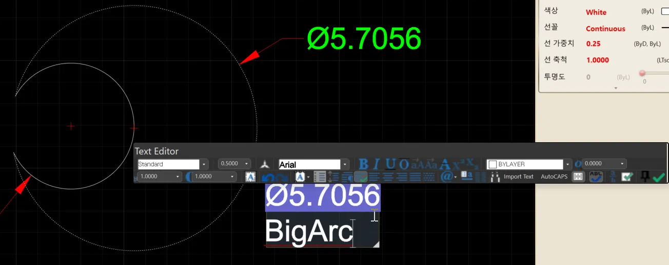 3) Text Editor 툴바의 Done버튼(V)을 클릭하거나, 도면의 여백 부분을 클릭하여 편집을 종료합니다.