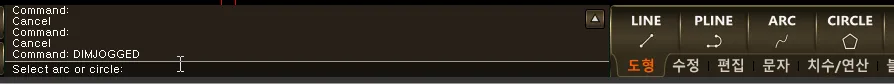 섹션 제목: “2. 꺽은선 반지름 치수 문자의 각도 변경 시연 영상”1) DIMJOGGED 명령을 실행하고, 도면에 반지름을 측정할 원 또는 호를 선택합니다.