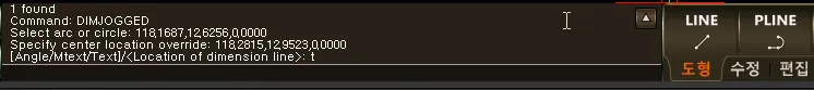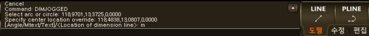 섹션 제목: “4. 지름 치수 문자를 변경하는 방법 시연 영상”1) DIMJOGGED 명령을 실행하고, 도면에 반지름을 측정할 원 또는 호를 선택합니다.