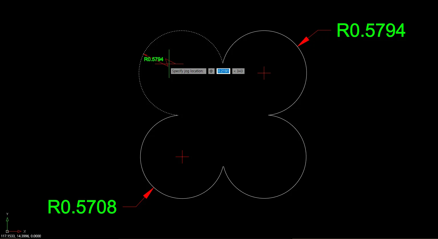 3) 꺽어진 반지름 치수를 작성할 새 중심점을 지정합니다.