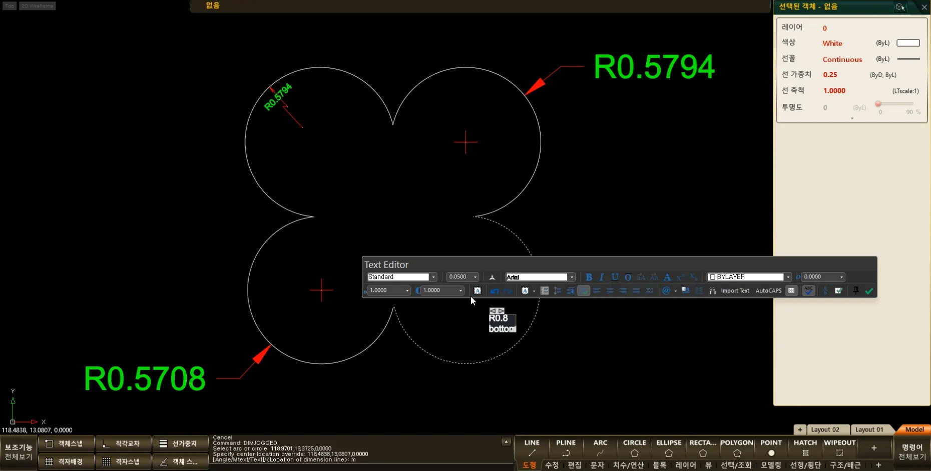 3. 꺽은선 반지름 치수를 여러줄 문자로 입력하는 방법 시연 영상