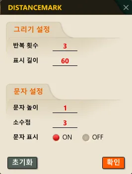 - 도면 내에서 일정 간격으로 거리 마크(Distance Mark) 를 반복 표시하는 기능입니다.