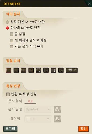 • DTEXT(단일행 텍스트)를 MTEXT(다중행 텍스트) 로 변환하는 기능입니다.