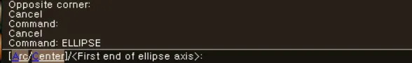 2) 화면 상에 마우스로 타원 축의 두 종점을 지정합니다.