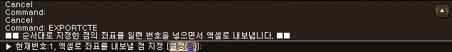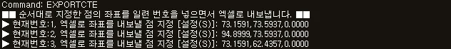 섹션 제목: “1. 좌표 내보내기 시연 영상”1) 명령창에 “EXPORTCTE” 입력합니다.