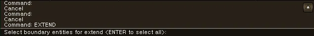 - 선택한 경계 객체를 기준으로 선, 폴리선, 호 등의 객체를 경계까지 연장하는 명령어입니다.