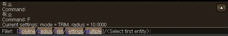 • “FILLET” 명령어를 실행합니다.