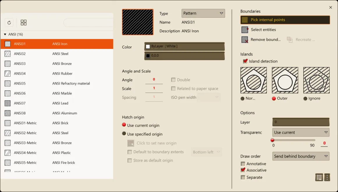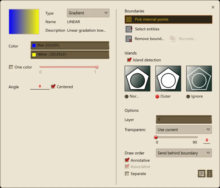 • Boundaries 항목을 통해 해치를 적용할 영역을 지정하는 방법을 선택할 수 있습니다.