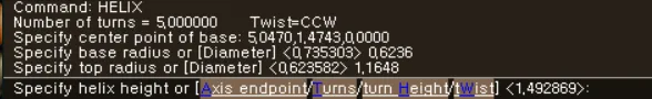6) 화면 상에 마우스로 나선 스프링의 높이를 설정하거나 명령어 창에 높이를 입력 후