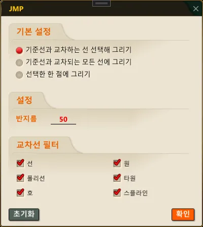 - 점프선을 그리기전에 옵션값을 팝업창에서 설정할 수 있습니다.