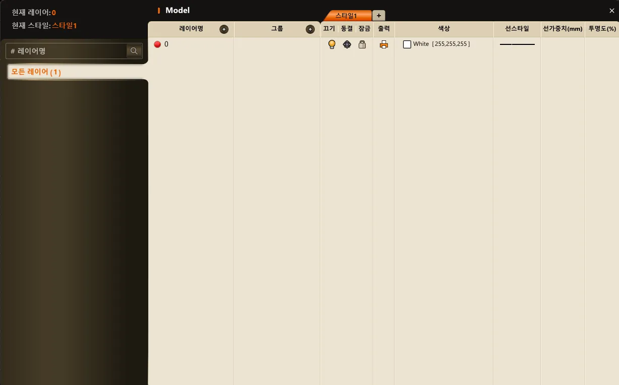 - 도면에서 사용하는 레이어를 생성·관리·편집하는 기능입니다. 레이어는 객체의 속성(색상, 선종류, 선가중치, 출력 여부 등)을 체계적으로 관리할 수 있게 하며, 도면 작업의 효율성과 가독성을 높여줍니다.