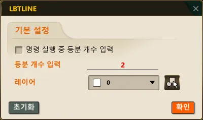 섹션 제목: “2. 등분선 넣기 설정을 수정하는 방법 시연 영상”1) “LBTLINE” 명령어를 실행합니다.