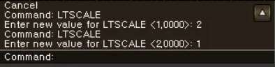 - 명령어를 실행했을 때 뜨는 “< >” 내부의 값으로 현재 적용된 선 스케일 축척 비율을 확인할 수 있습니다.