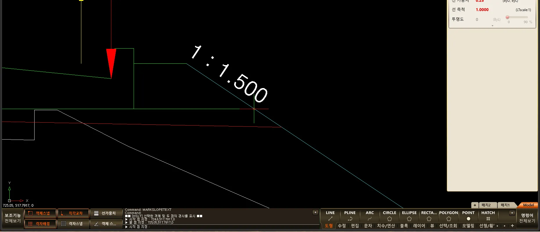1) 명령창에 “MARKSLOPETEXT” 를 입력합니다.
