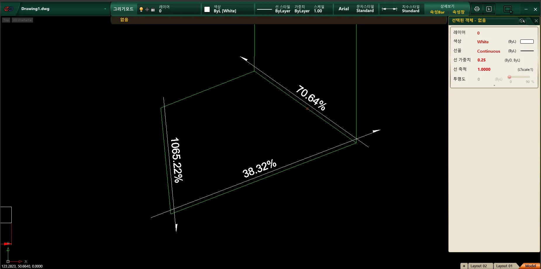 3) 도면에서 경사를 측정할 객체를 클릭하고, 엔터키를 누릅니다.