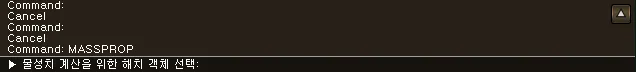 1) 명령창에 “MASSPROP” 을 입력합니다.