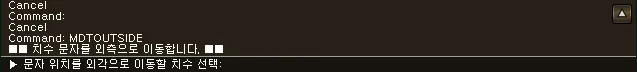섹션 제목: “1. 치수 외곽 이동하기 시연 영상”1) 명령창에 “MDTOUTSIDE” 를 입력합니다.
