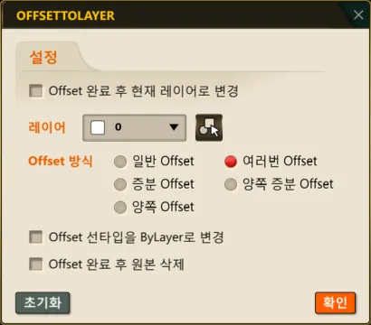 • 레이어 선택 시 오프셋이 완료된 후 생성된 새 객체를 선택한 레이어로 이동시킵니다.