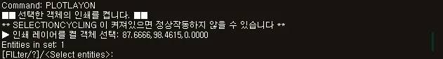 3) “PLOTLAYOFF” 명령어로 출력이 꺼져 있던 객체가 속한 레이어가 플롯 포함 상태로 변경됩니다. 4) 이후 “PLOT” 명령어를 실행하면 해당 레이어의 객체들은 출력됩니다.