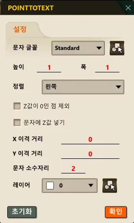 섹션 제목: “1. 좌표 생성하기 시연 영상”1) 명령창에 “POINTTOTEXT” 를 입력합니다.