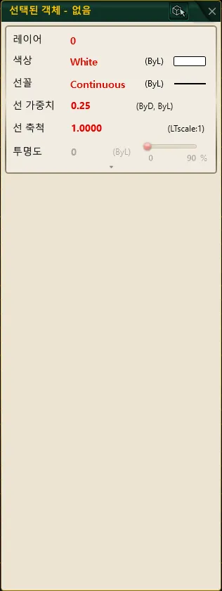 - 선택한 객체의 속성 정보를 확인하고 수정하는 기능 입니다.